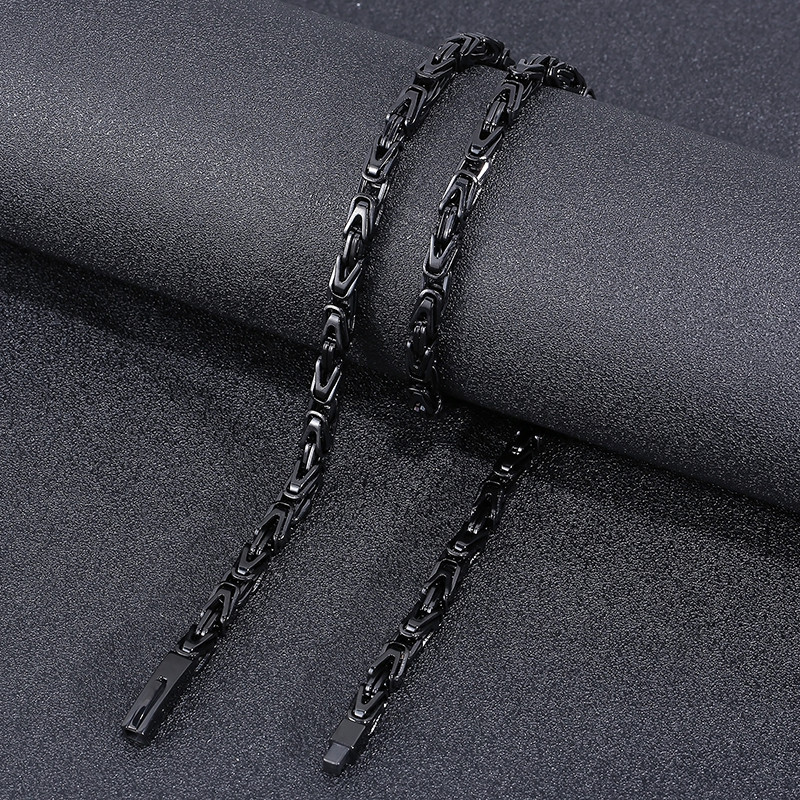 Stainless steel personalized retro style black V-shaped woven men's 650mm titanium steel necklaceWholesale Price: