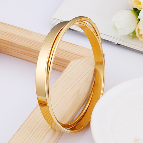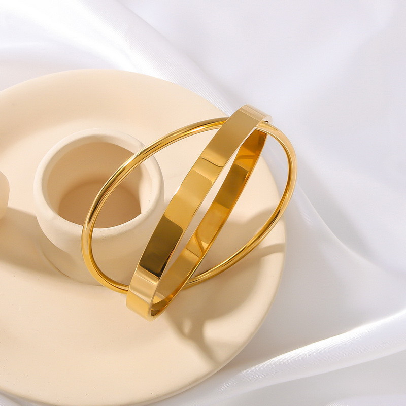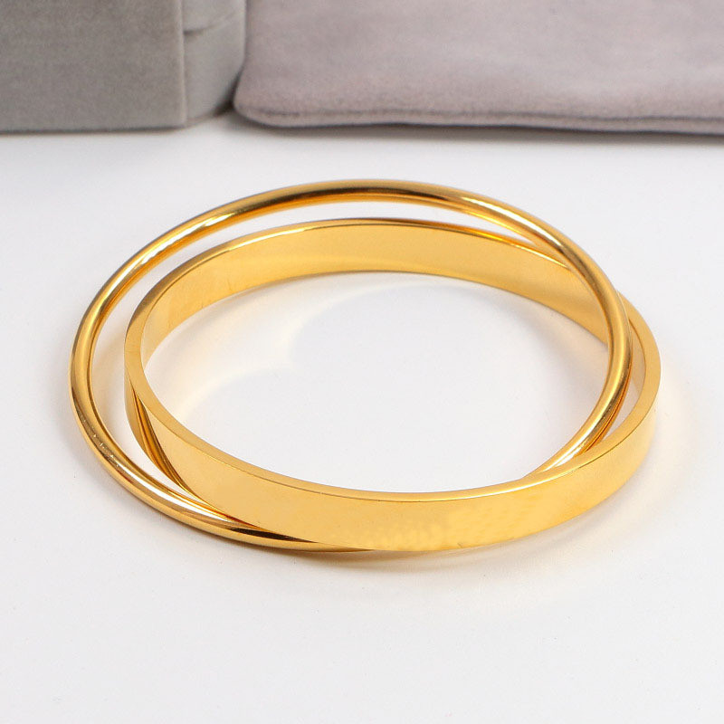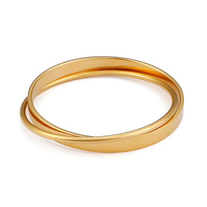 - Stainless Steel Gold-plating Interlocking Double Ring Smooth Surface Bangle