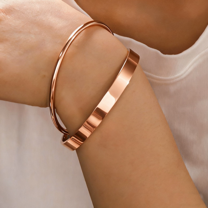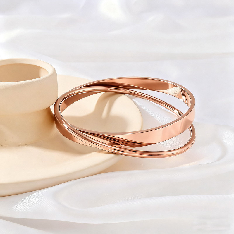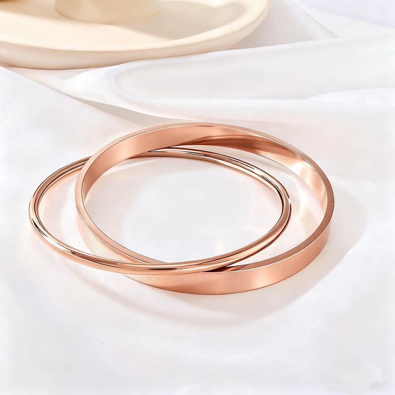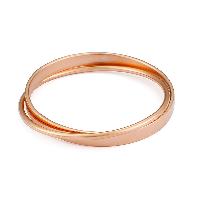 - Stainless Steel Rose Gold-plating Interlocking Double Ring Smooth Surface Bangle