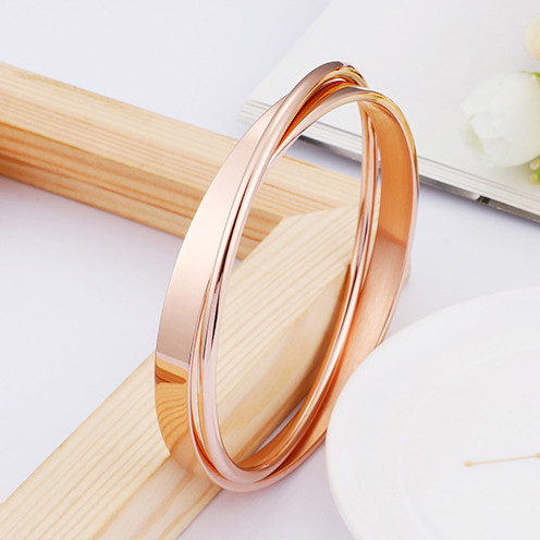 Stainless Steel Rose Gold-plating Interlocking Double Ring Smooth Surface BangleWholesale Price: US$2.58