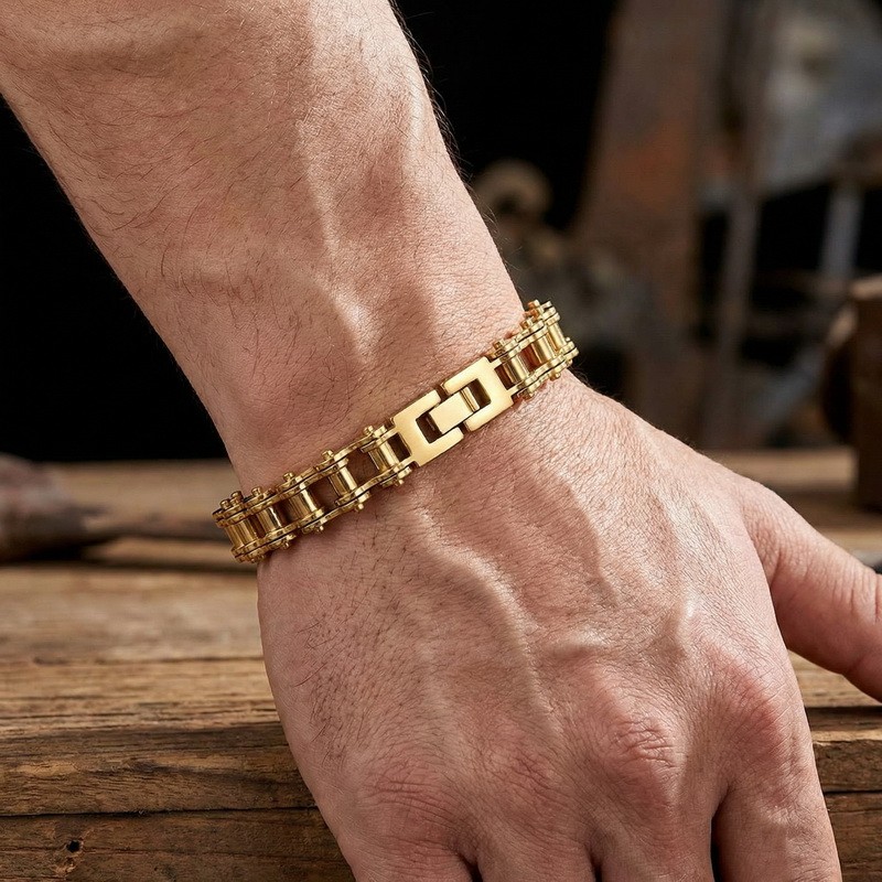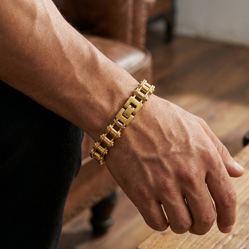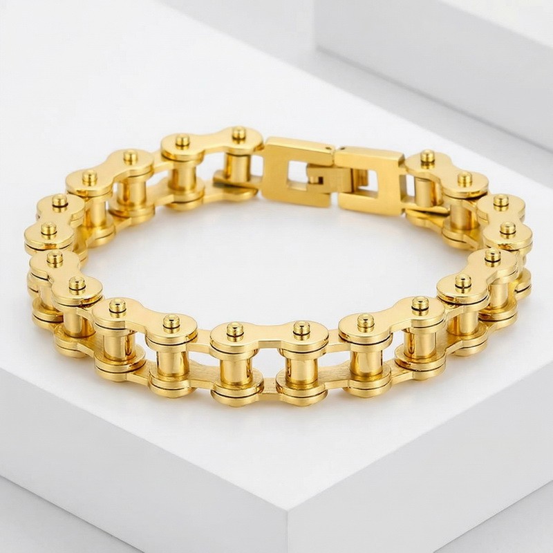 - Men's stainless steel jewelry bike chain style bracelet