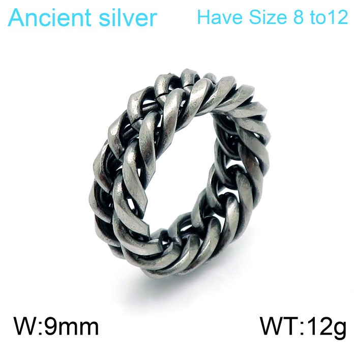 - Cold neutral style polished chain double woven Cuban chain antique silver ring