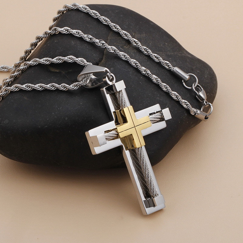 - Men's hip-hop stainless steel personalized steel wire cross pendant