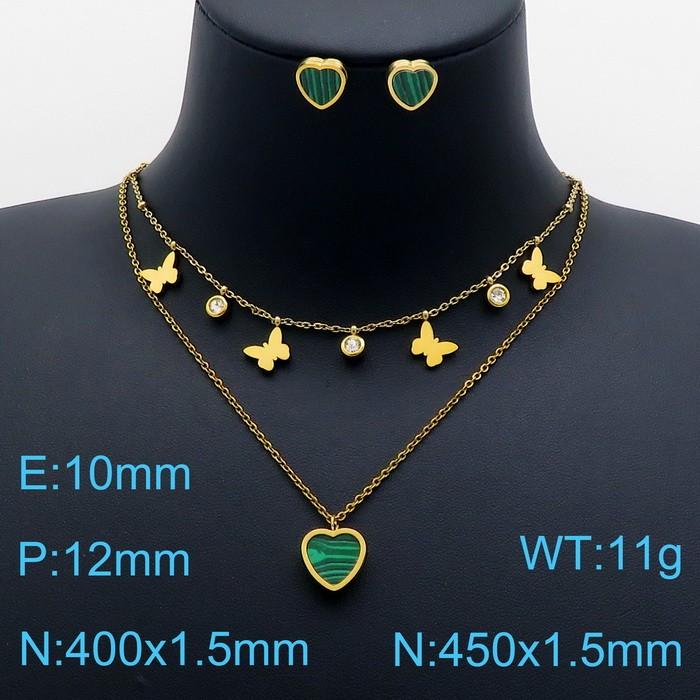Stainless Steel Set Geometric Link Chain Necklace&Bracelet&Earrings With Heart Pendant Gold ColorWholesale Price: