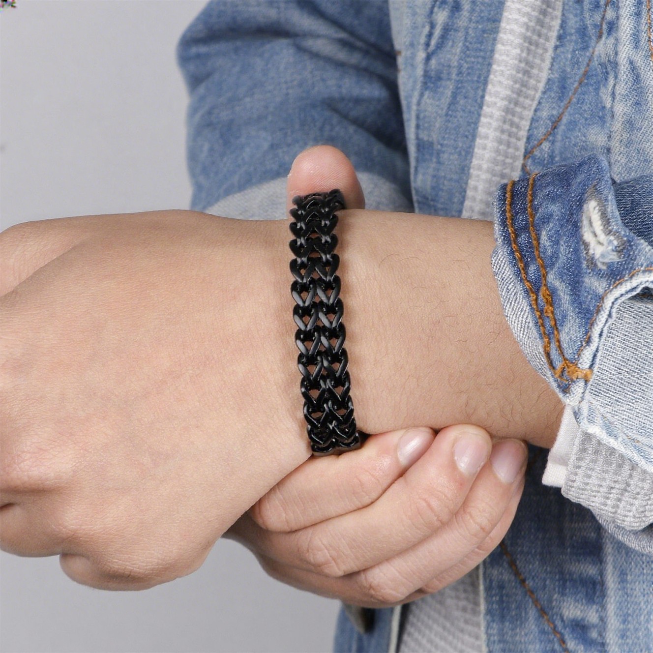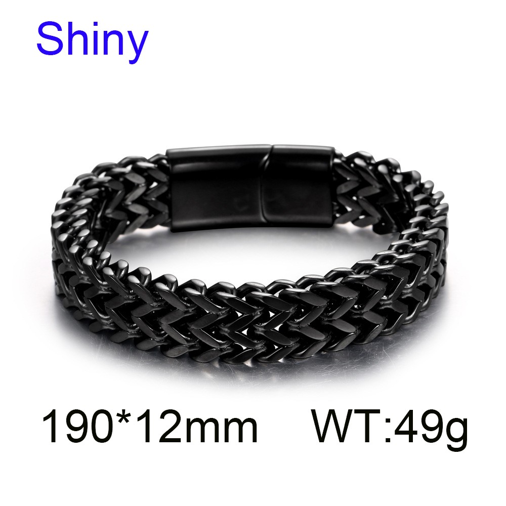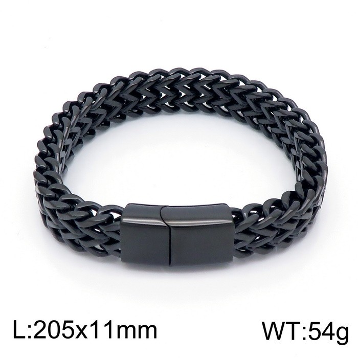 - Stainless Steel Simple and personalized woven double row front and back keel flat buckle Black-plating Bracelet