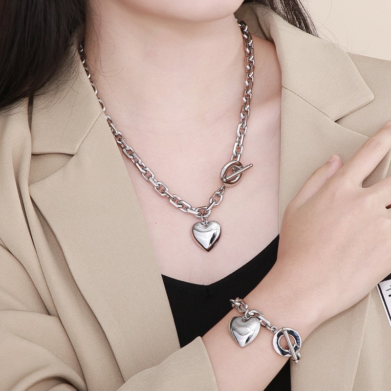 Golden Love Pendant O-Chain OT Buckle Internet Celebrity Hip Hop Peach Heart Stainless Steel Set