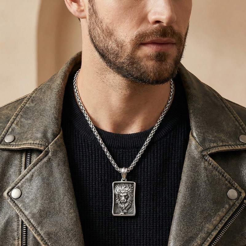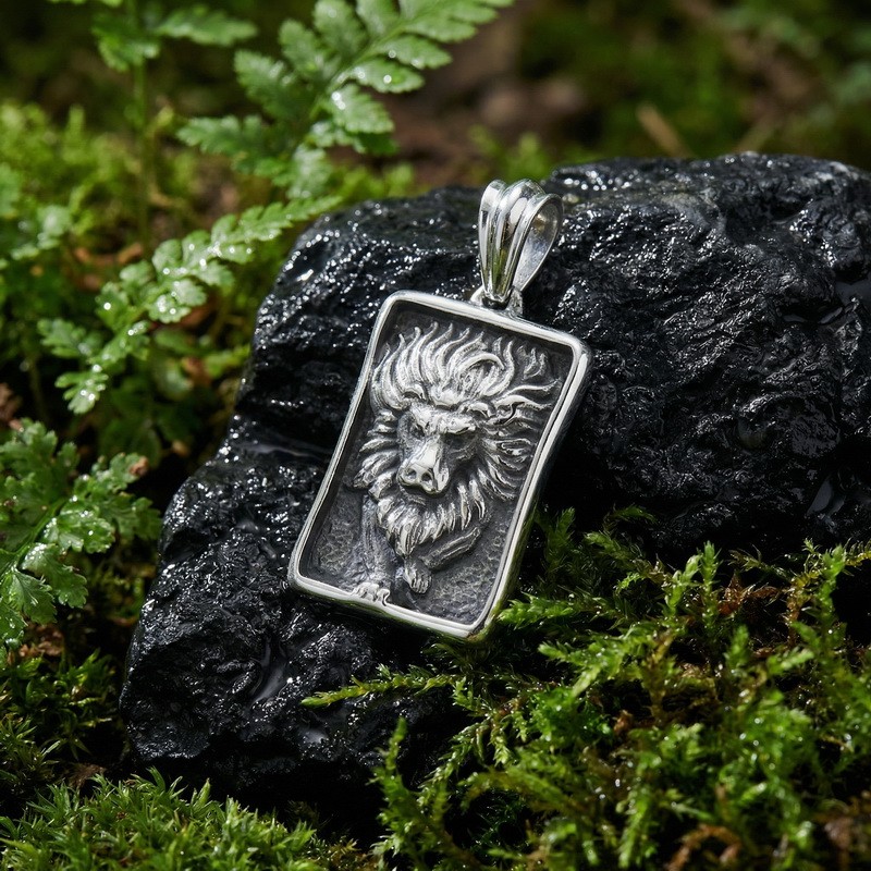 - Stainless steel cast lion square pendant