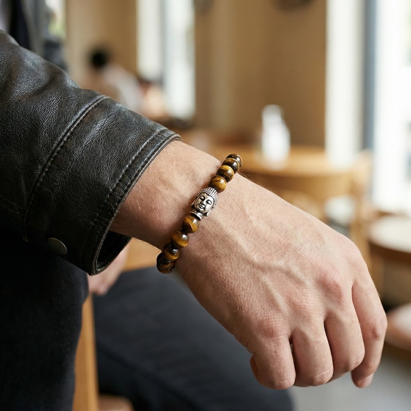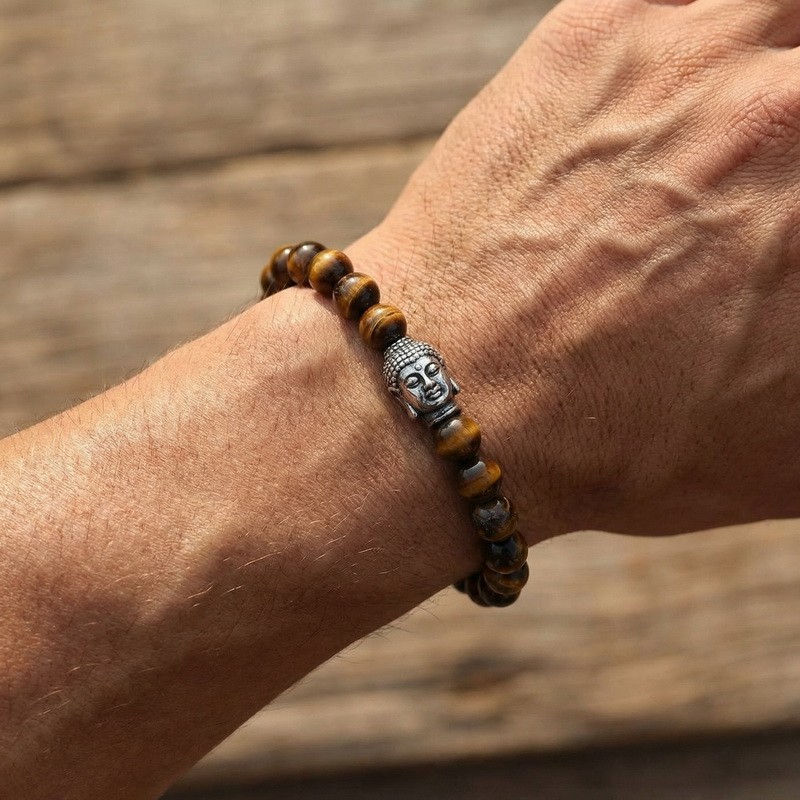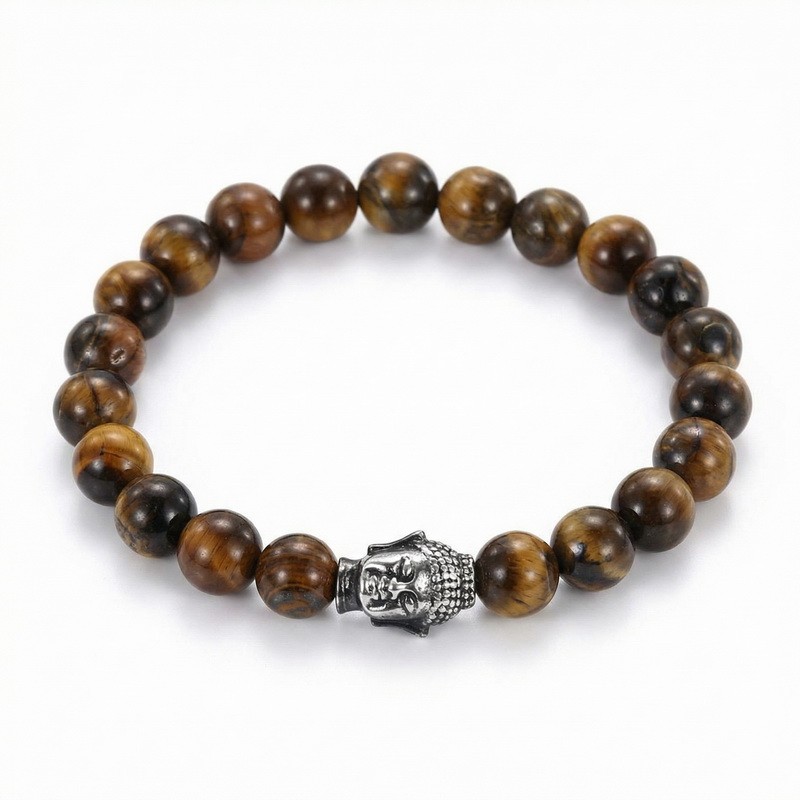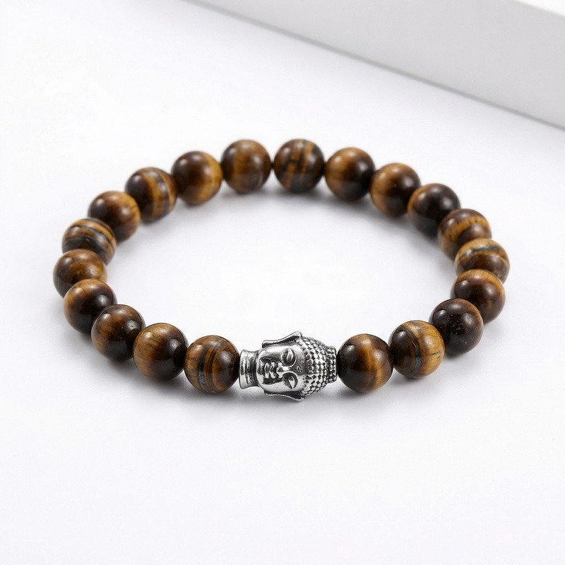 - Stainless steel cast Buddha head paired with bead bracelet