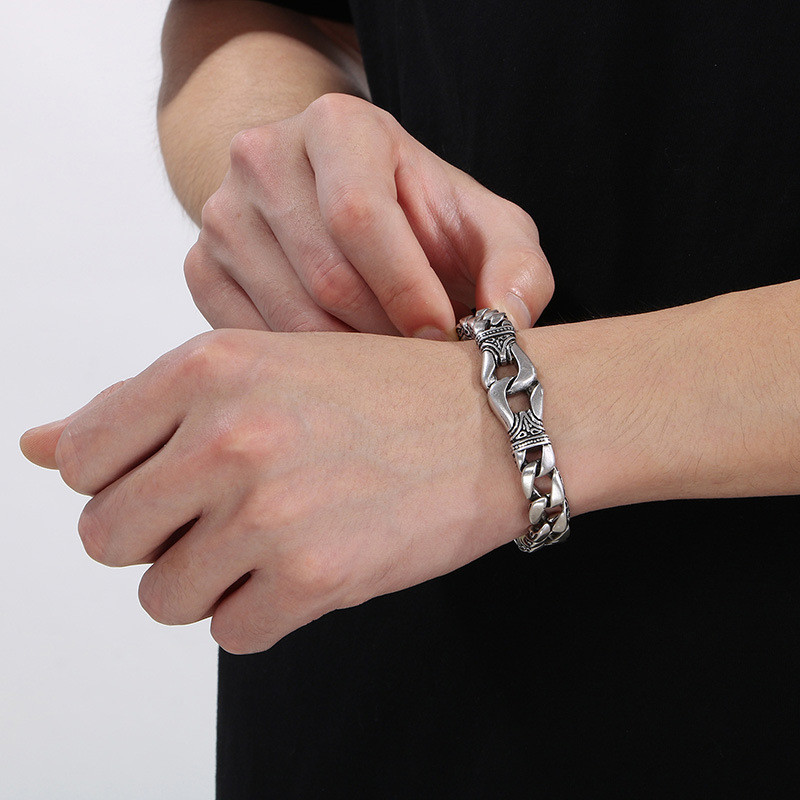 Retro carved totem double circle linked men's braceletWholesale Price: