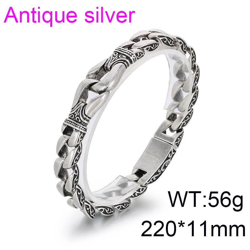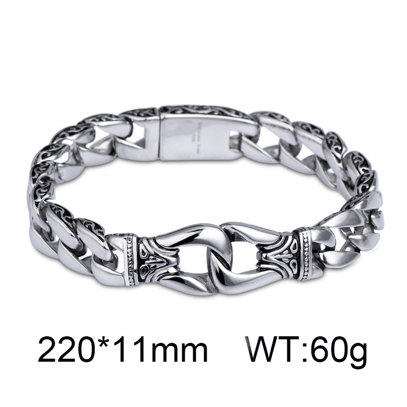 Hip Hop Rock Curb Chain Stainless Steel Retro carved totem double circle linked men's Bracelet BangleWholesale Price: