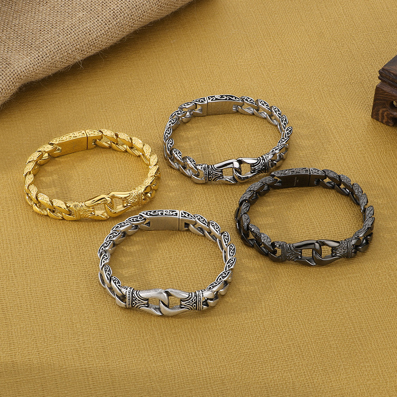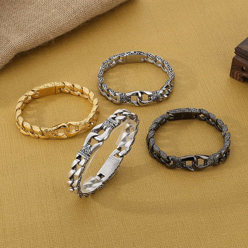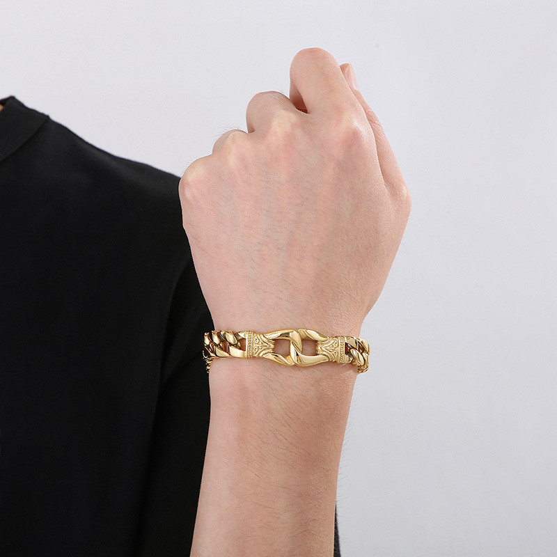 - Stainless Steel Retro carved totem double circle linked men's Gold-plating Bracelet