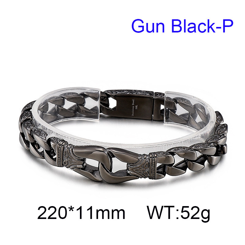 Stainless Steel Retro carved totem double circle linked men's Gun Black-plating BraceletWholesale Price: