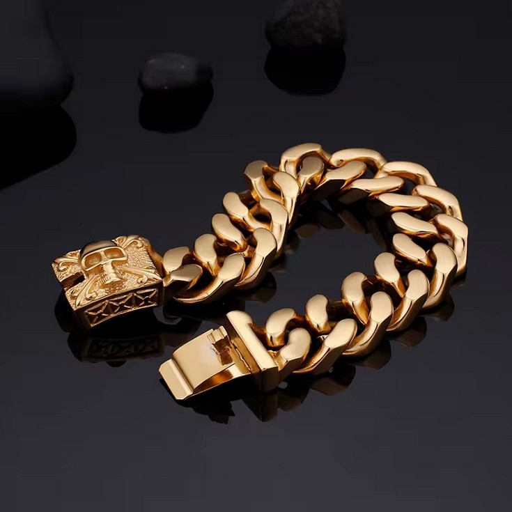 - Cuban chain thick bracelet men's stainless steel skull Gold-plating Bracelet