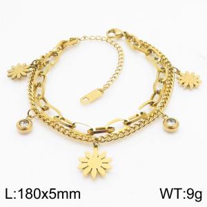 180mm Women Gold-Plated Stainless Steel Double-Chain Bracelet with Comic Flower CharmsWholesale Price: