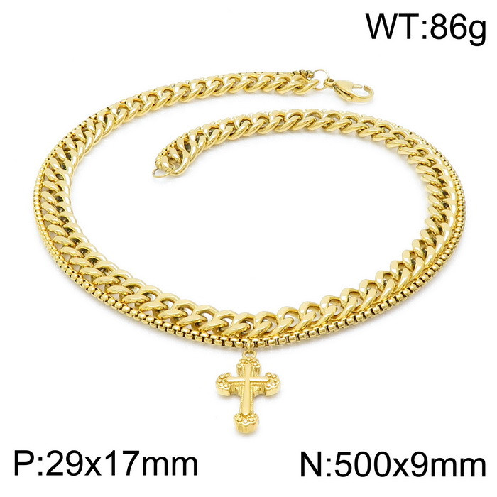 SS golden double chain cross NecklaceWholesale Price: