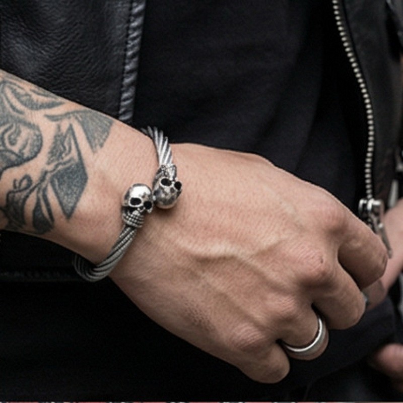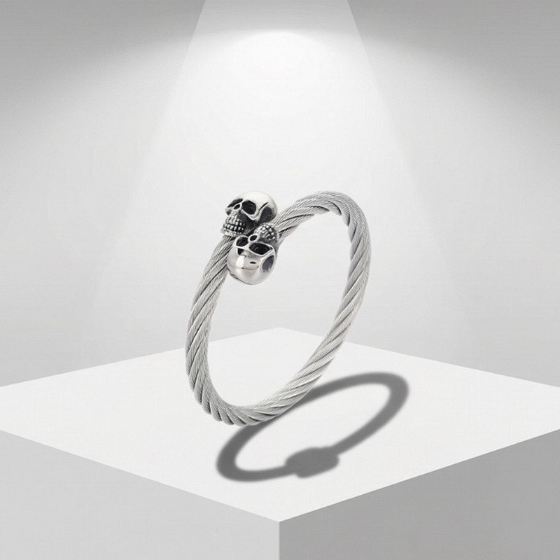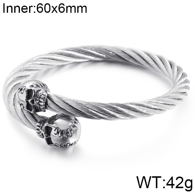 - Punk Stainless Steel Men's Wire Skull Via Bangle