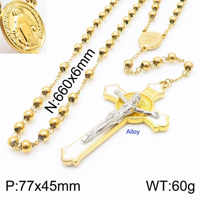 65cm Long Silver Color Stainless Steel Beads Link Chain Necklace Unisex Religion Cross Pendant For Women MenWholesale Price: