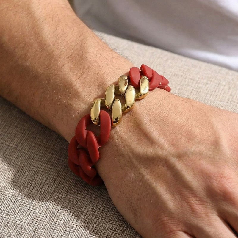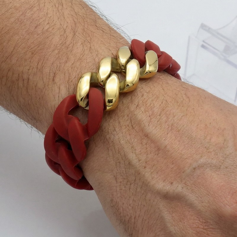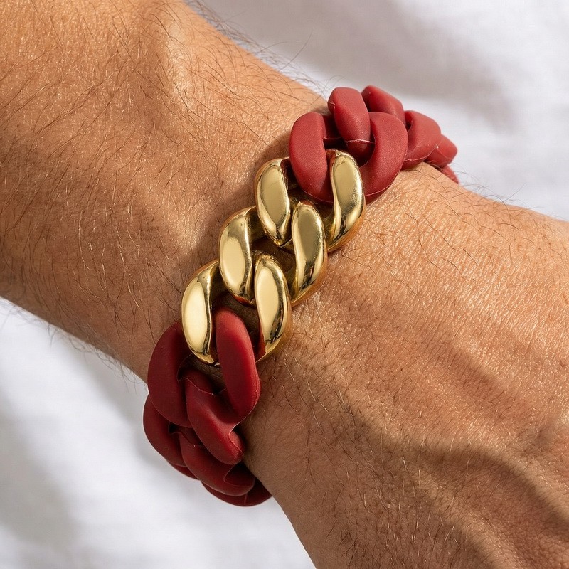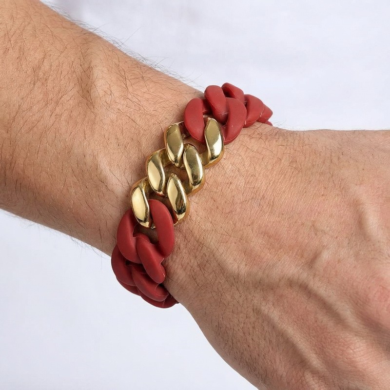 - Stainless steel Cuban chain paired with silicone bracelet