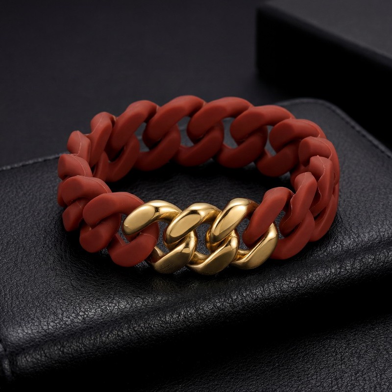 Stainless steel Cuban chain paired with silicone bracelet
