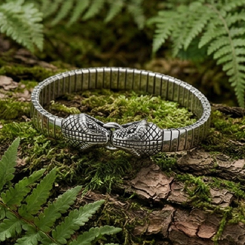 - Double Snakehead Punk Style Stretch Men's Bracelet