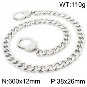 Minimally polished stainless steel 13mm faucet buckle with four sided polished Cuban chain 55cm necklaceWholesale Price: