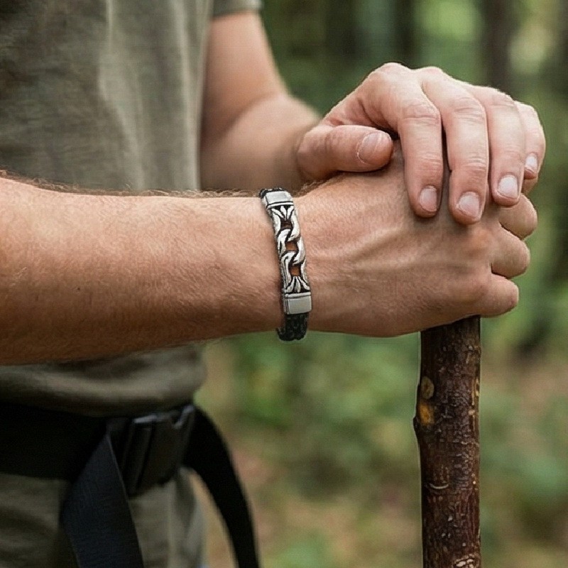 - Pop Punk Stainless Steel Link Totem Leather Bracelet