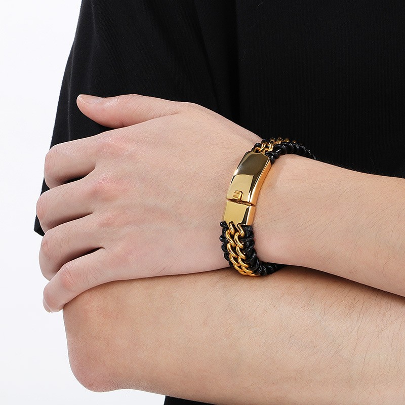 - Buckle Chain Black Leather Rope Braided Men's Bracelet