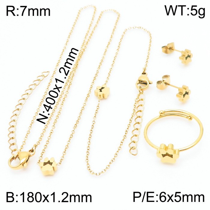 - Gold Color Cute Pet Paw Print Jewelry Set Fashion Sweet Stainless Steel Women Necklace Bracelet Earring Ring Four Piece Set