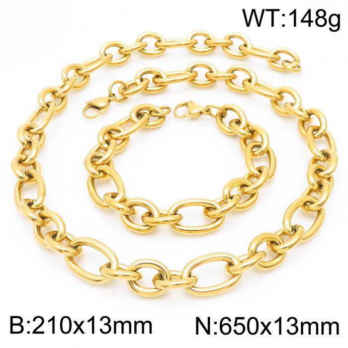 - 13mm21cm13mm65cm=Simple men's and women's irregular O chain lobster clasp gold-plated jewelry set