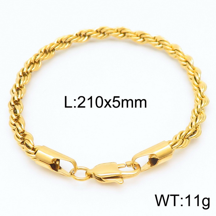 Gold 210x5mm Rope Chain Stainless Steel BraceletWholesale Price: