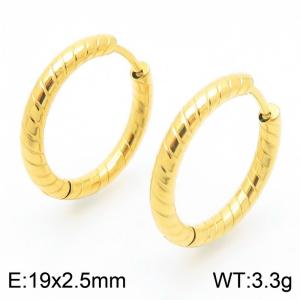 Women 19mm Gold-Plated Stainless Steel Striped Round Clip-on EarringsWholesale Price: