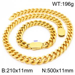 European and American personality trend stainless steel Cuban chain men's flat buckle jewelry suit
