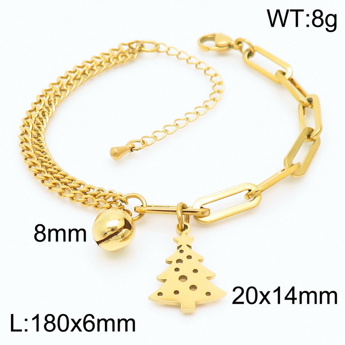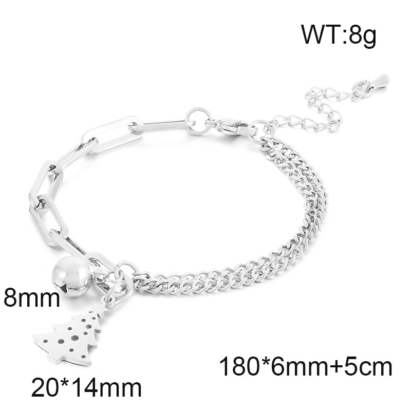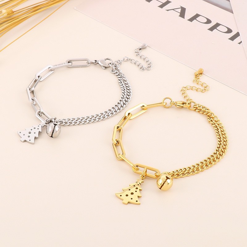 Women Silver Color Stainless Steel Double Style Chains Bracelet with Cartoon Bell&Christmas Tree Charms