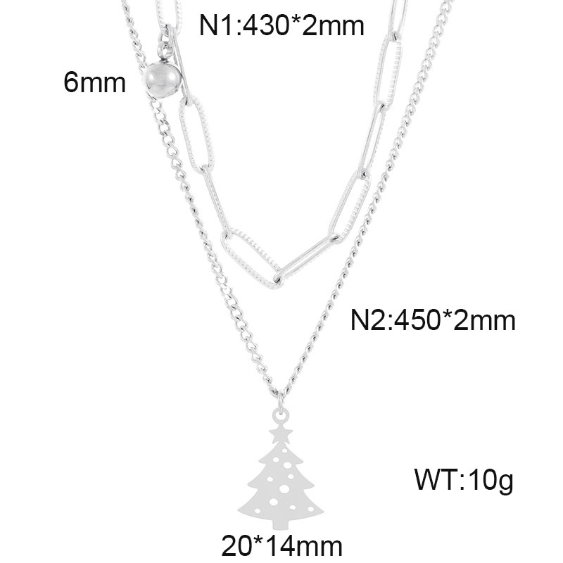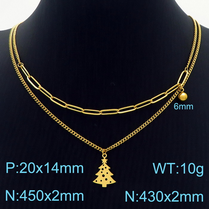 - 450mm Women Gold-Plated Stainless Steel Double Style Chains Necklace with Cartoon Bell&Christmas Tree Pendants