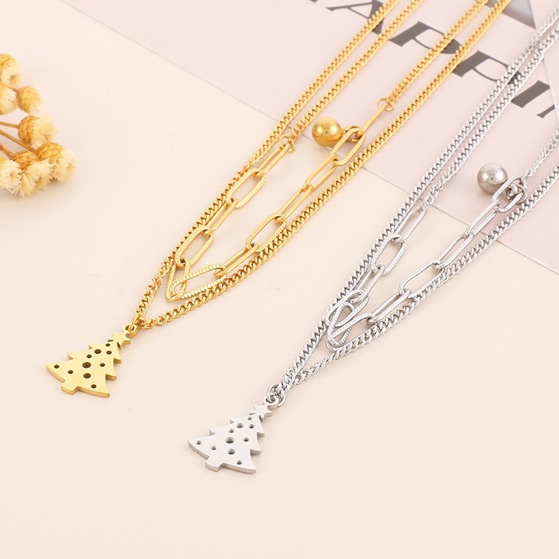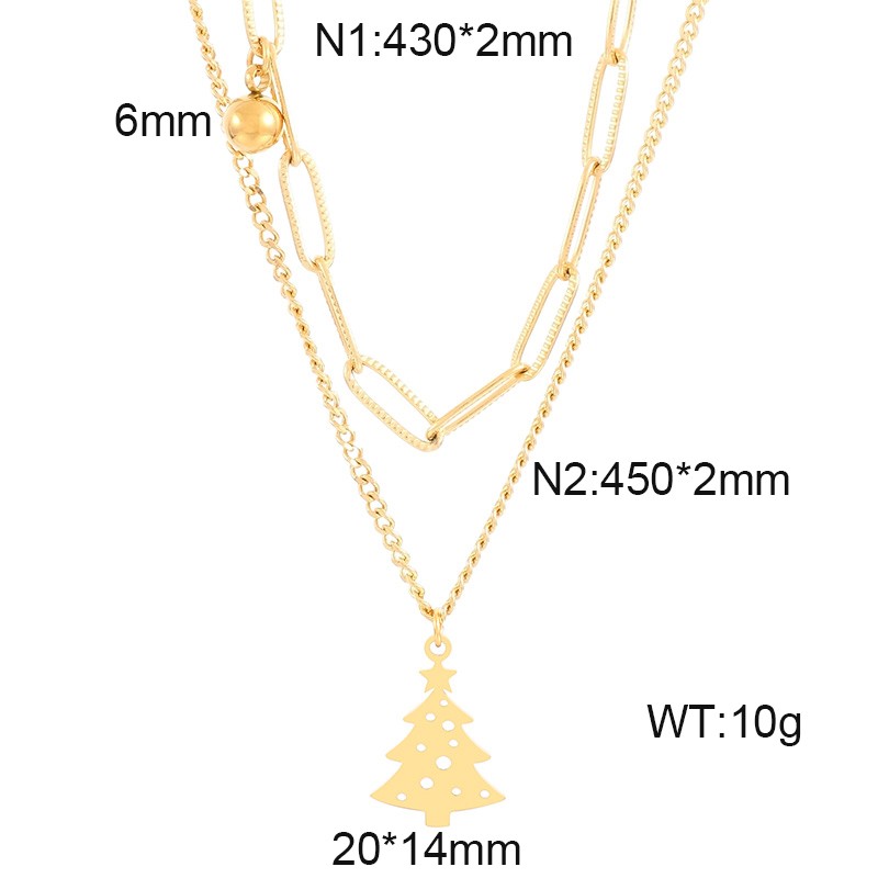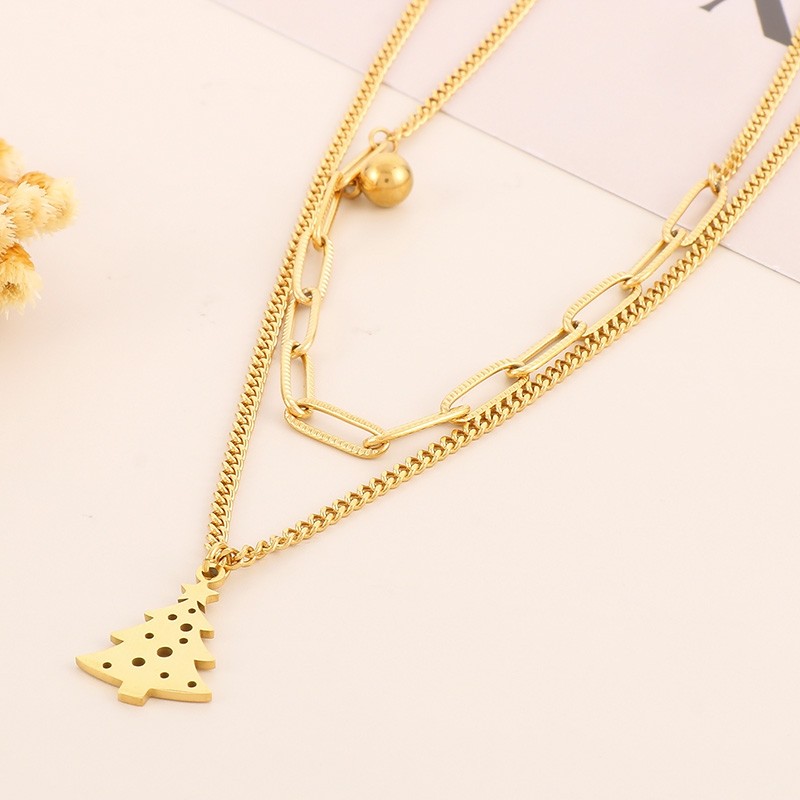 450mm Women Gold-Plated Stainless Steel Double Style Chains Necklace with Cartoon Bell&Christmas Tree PendantsWholesale Price: