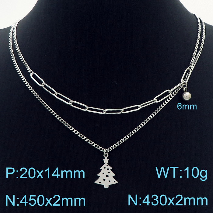 - 450mm Women Silver Color Stainless Steel Double Style Chains Necklace with Cartoon Bell&Christmas Tree Pendants