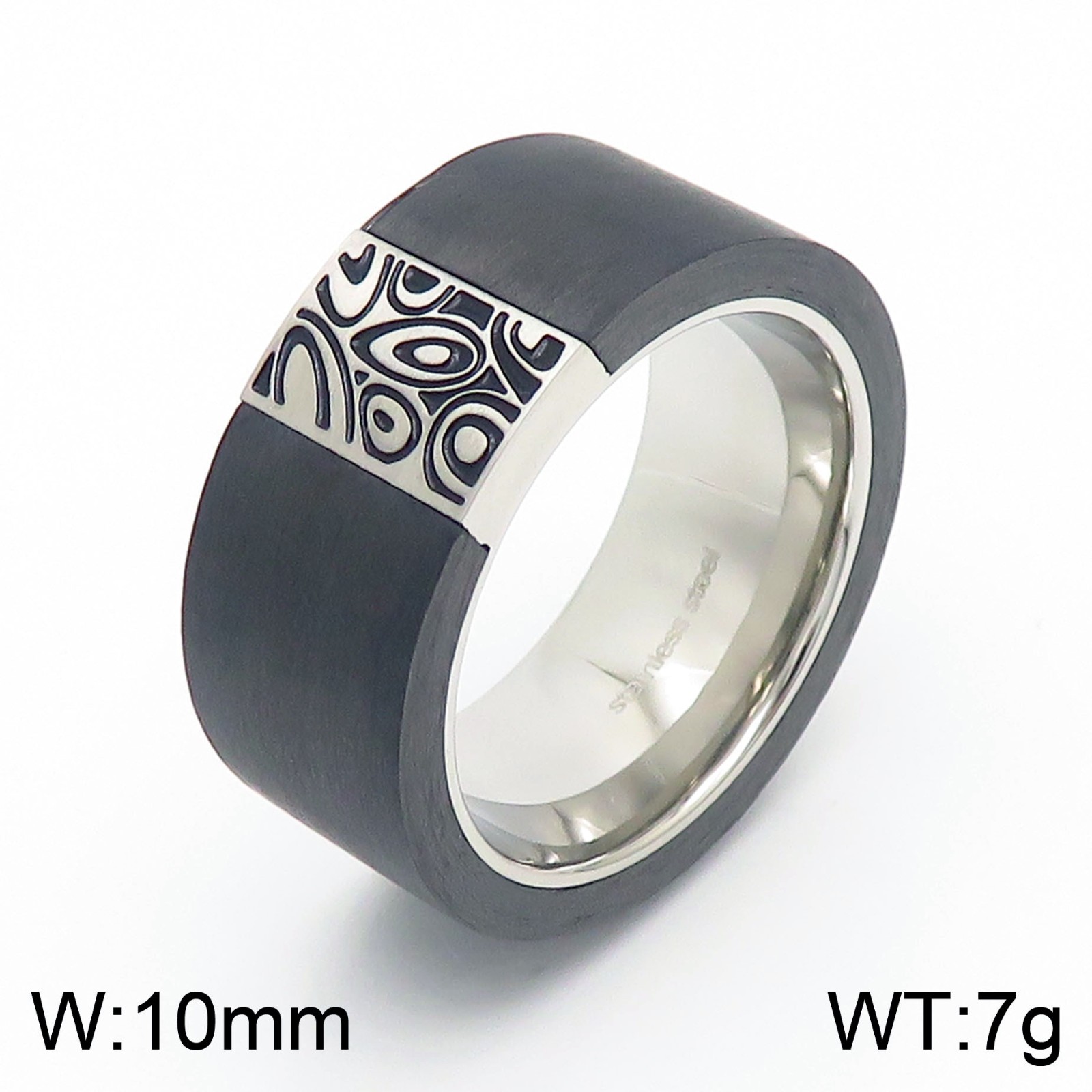 - Men Black Stainless Steel Jewelry Ring with Abstract Pattern