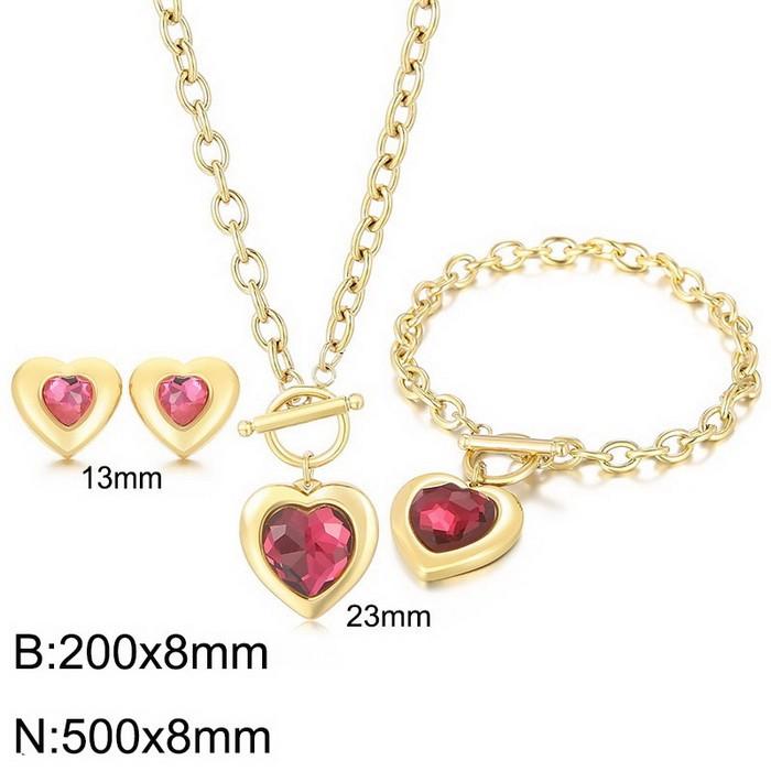 Gold Plated Lightweight Cable Chain Necklace + Bracelet + Earrings With Love Charm Stainless Steel Jewelry Set For WomenWholesale Price: