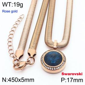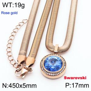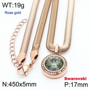 - Stainless steel 450X5mm snake chain with swarovski crystone circle pendant fashional rose gold necklace