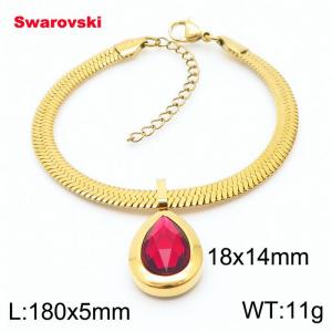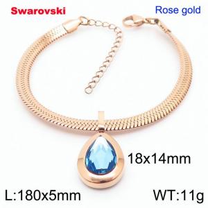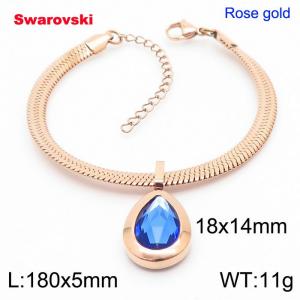 - Stainless steel 180X5mm snake chain with swarovski water drop stone pendant fashional rose gold bracelet
