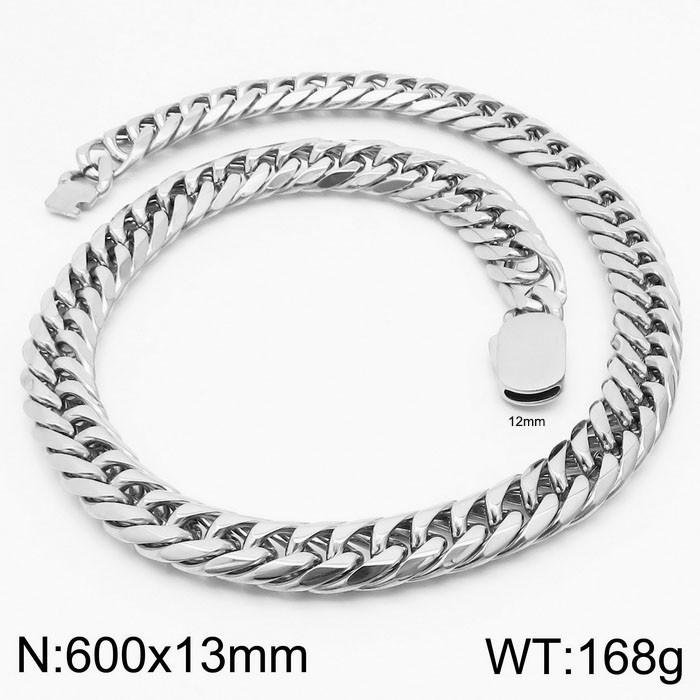 13mm Stainless Steel Cuban Chain Necklace Men's Silver Color Shiny Hip Hop JewelryWholesale Price: