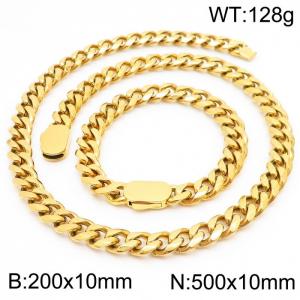 - Fashion Gold Color Stainless Steel Cuban Link Chain Necklace & Bracelets For Men Jewelry Set