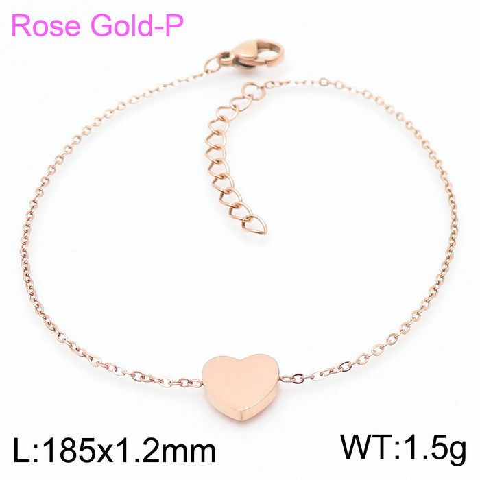 - Stainless steel 185x1.2mm welding chain lobster clasp solid heart charm rose gold bracelet