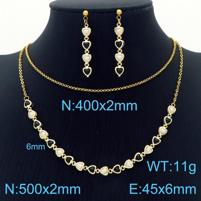 - Ins White And Black Shell Heart Earrings 18K Gold Plated Copper Stainless Steel Double Necklaces Jewelry Set