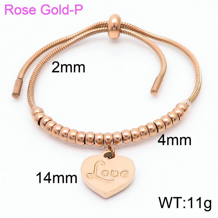 - Wholesale Heart Love Pendant Adjustable Keel Chain 18K Rose Gold Plated Stainless Steel Beads Cuff Bracelets Women Jewelry