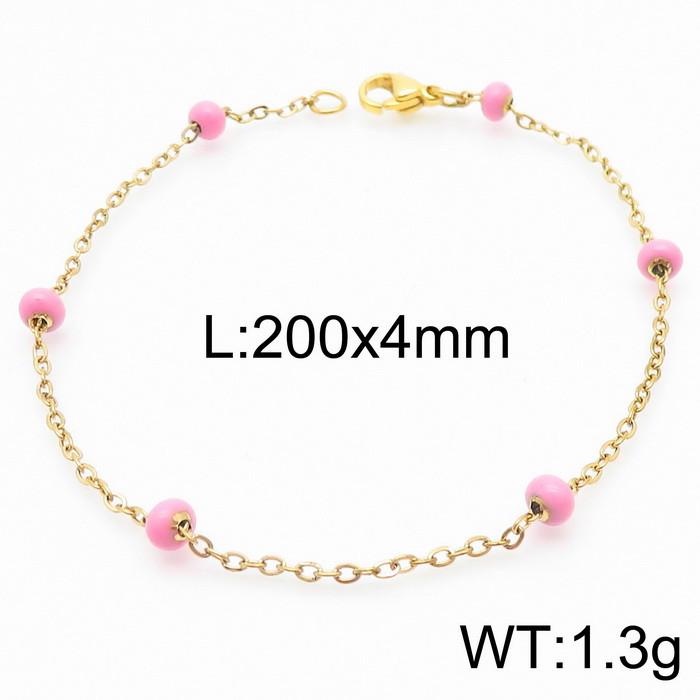 4mm Stainless Steel Gold Plated Bracelet with Pink BeadsWholesale Price: