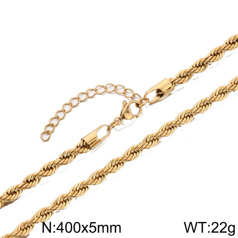 - Stainless steel 400x5mm rope chain with extended chain classic gold necklace