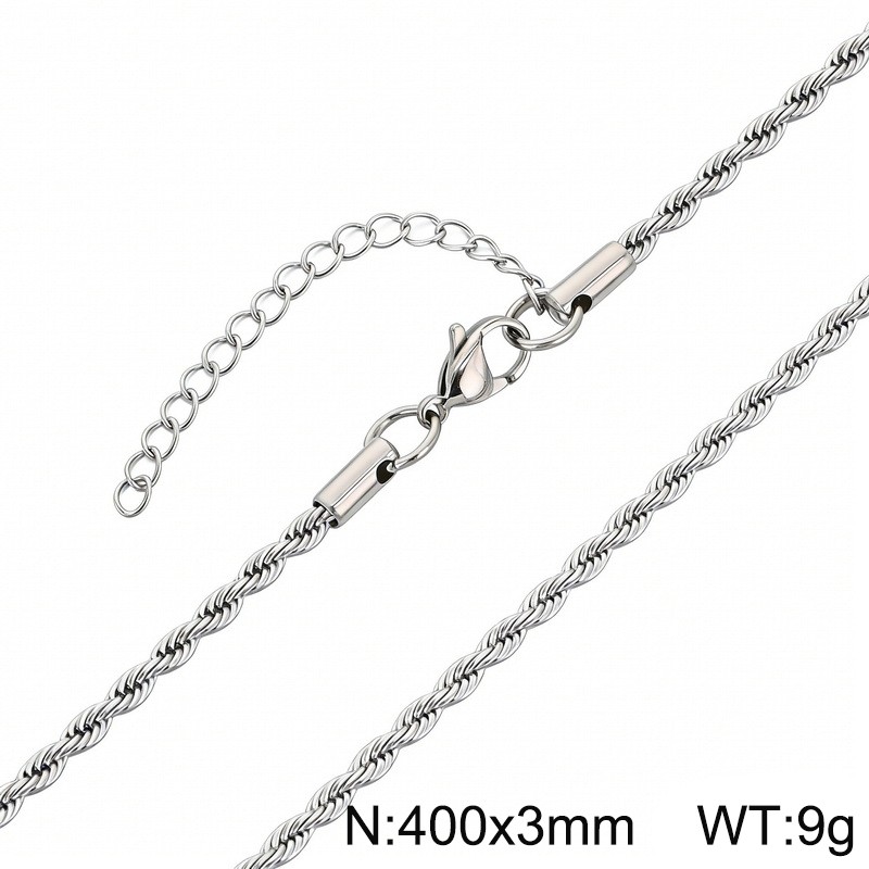 - Stainless steel 400x3mm rope chain with extended chain classic silver necklace