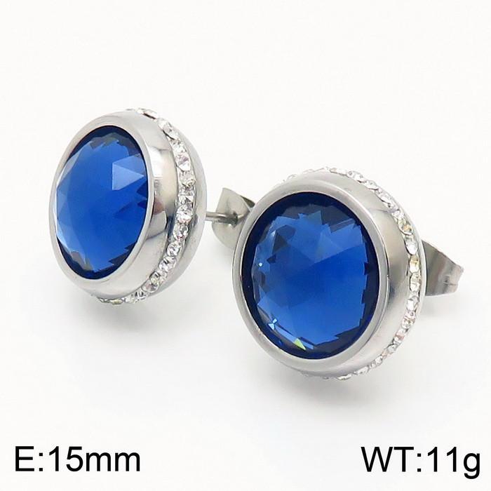 - Stainless steel blue glass stone lady earrings