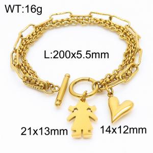 Fashion multilayer stainless steel chain stitching peach heart and girl's OT buckle bracelet